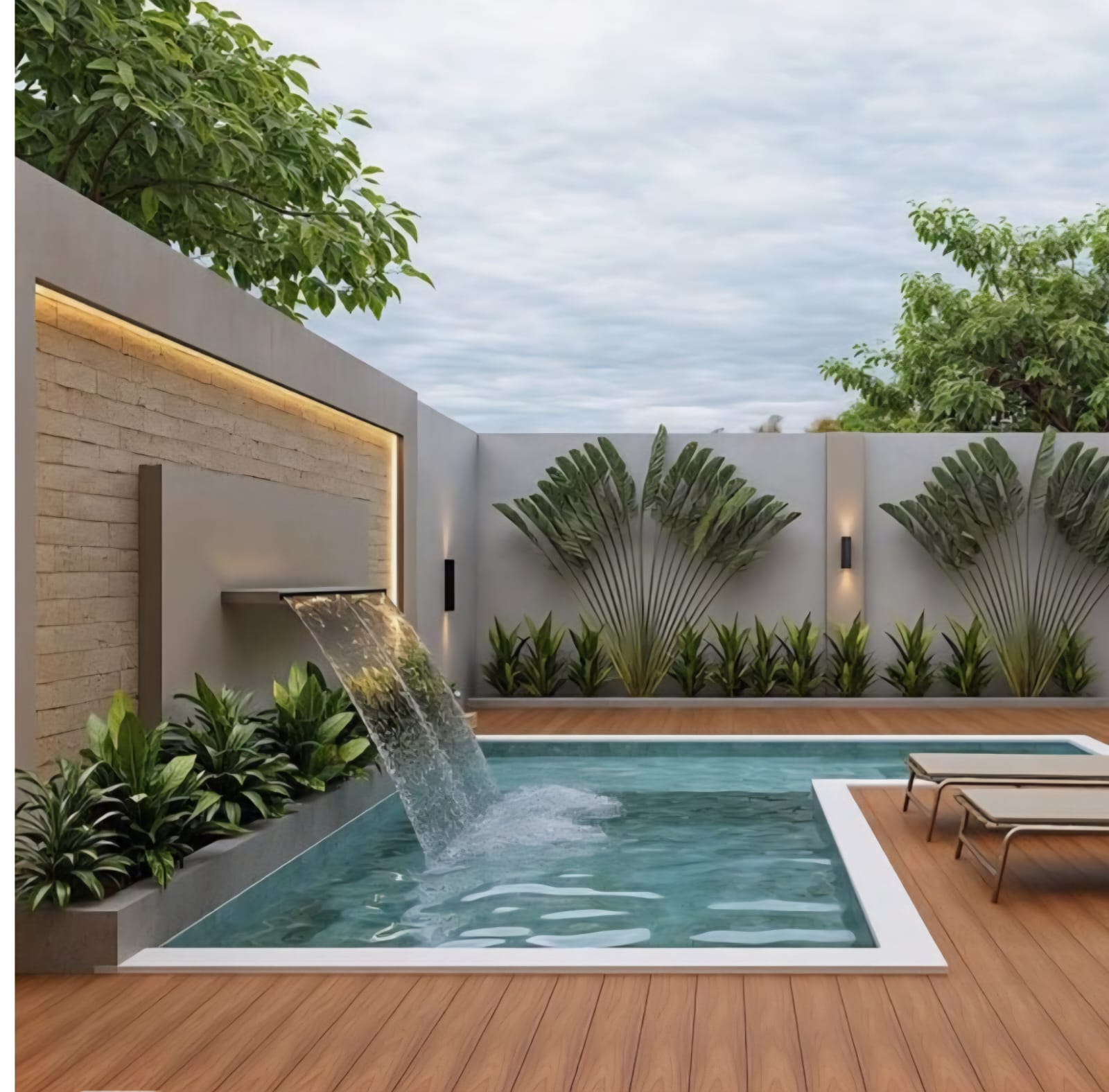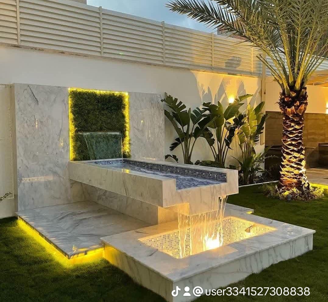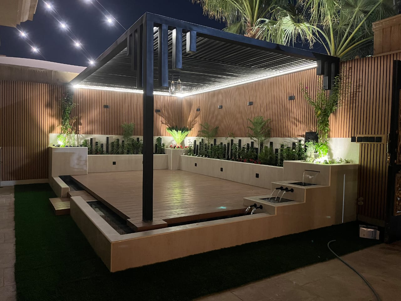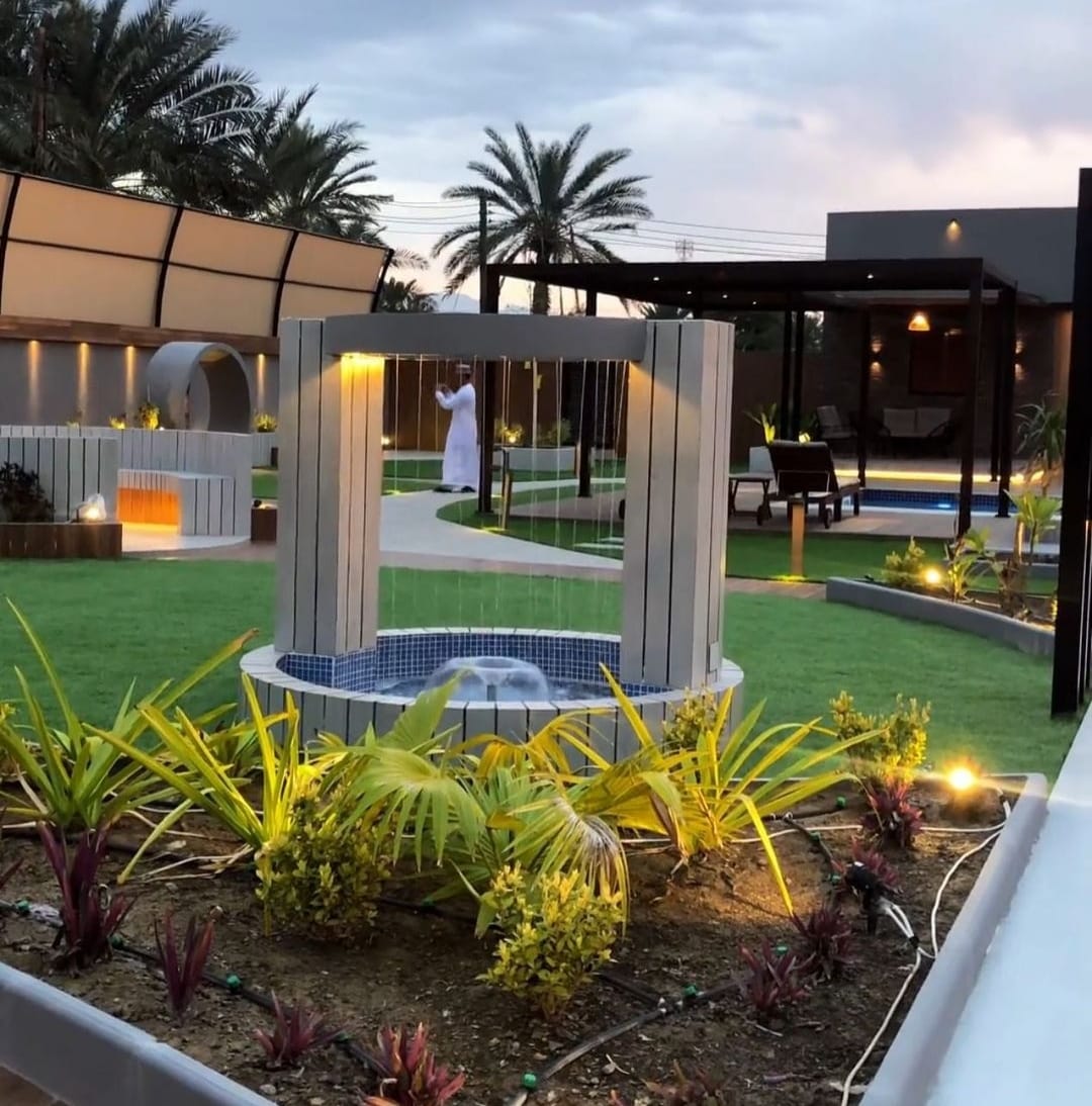 نعتني بكل التفاصيل من اختيار النباتات إلى تنفيذ الشلالات والجلسات الخارجية،